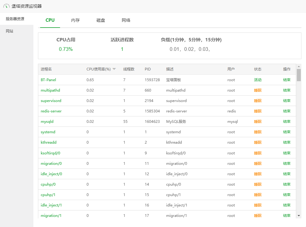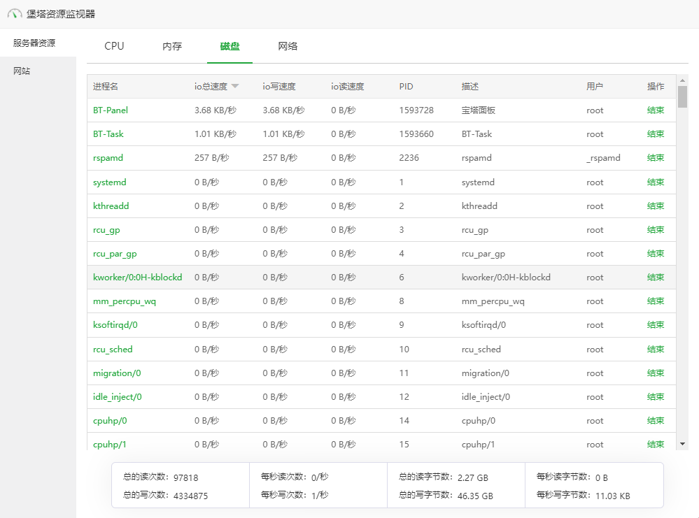 对网站每秒请求数和进程占用的资源进行监视
